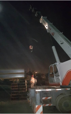 看,夜深人靜中,圖片中我不知道他們的姓名,看不到他們的面孔,但是我看到了:汽車吊上站著我們的員工,貨車上站著我們的員工,操作臺上有我們的員工,他們是那樣的不怕苦、不怕累,那樣的認真、那樣的堅守……