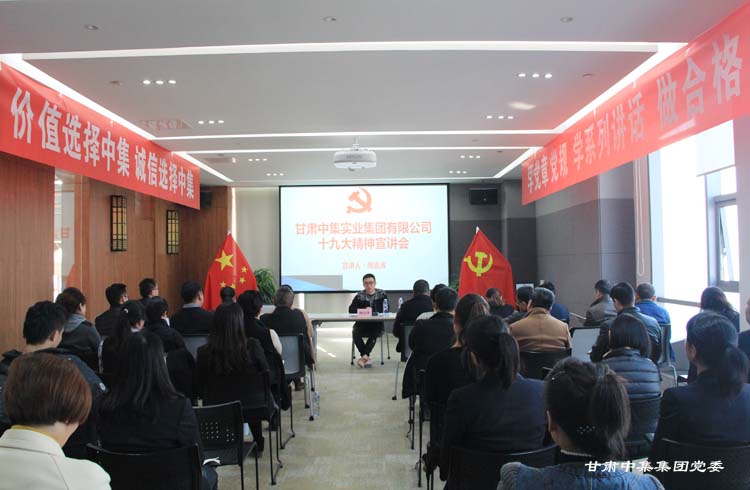 11月23日下午,甘肅中集實業(yè)集團(tuán)有限公司黨委在公司黨建活動室開展黨的十九大精神專題教育活動,公司黨委書記、董事長周啟濤代表集團(tuán)公司黨委,以《深入學(xué)習(xí)黨的十九大精神,建設(shè)美好幸福新蘭州》為主題,向公司全體黨員、入黨積極分子、集團(tuán)公司各版塊及各部門負(fù)責(zé)人宣講黨的十九大精神。