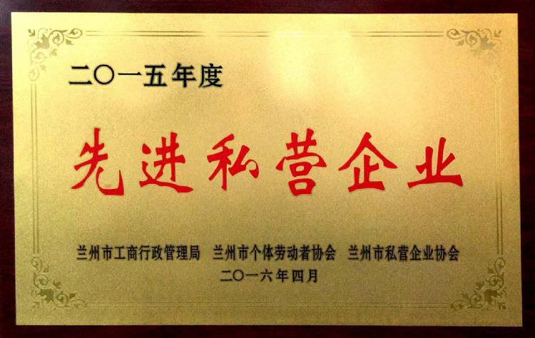 2016年4月,甘肅中集房地產(chǎn)開發(fā)有限公司榮獲“2015年度先進私營企業(yè)”;