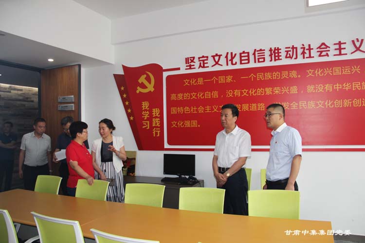 調(diào)研組一行首先參觀了集團(tuán)公司黨委宣傳陣地、黨員活動(dòng)室、談心談話室、閱覽室、健身中心等,通過(guò)查看黨支部標(biāo)準(zhǔn)化建設(shè)資料、聽(tīng)取專題工作匯報(bào)和現(xiàn)場(chǎng)交談后,馬振亞副部長(zhǎng)對(duì)甘肅中集集團(tuán)黨委創(chuàng)新工作思路給予高度評(píng)價(jià),重點(diǎn)對(duì)集團(tuán)公司黨委黨支部建設(shè)標(biāo)準(zhǔn)化、樓宇黨建工作特色和亮點(diǎn),特別是中集理想國(guó)際寫字樓樓宇聯(lián)合黨支部通過(guò)街道、城市社區(qū)“串聯(lián)”城市基層黨組織,創(chuàng)新城市基層黨建發(fā)揮的橋梁紐帶作用給予了高度評(píng)價(jià),馬部長(zhǎng)指出“甘肅中集集團(tuán)樓宇黨群服務(wù)中心在城市基層黨建工作中開(kāi)創(chuàng)了活動(dòng)共聯(lián)、資源共享、信息共用、文化共興創(chuàng)新方式,打造了特色示范帶動(dòng),為全省城市基層黨建提供了好的經(jīng)驗(yàn)和做法。在下一步工作中,要繼續(xù)加強(qiáng)黨支部建設(shè)標(biāo)準(zhǔn)化,創(chuàng)新活動(dòng)載體,不斷從中汲取科學(xué)智慧和理論力量,更好的總結(jié)經(jīng)驗(yàn)并進(jìn)行推廣,為全省非公企業(yè)和城市基層黨建工作做好榜樣標(biāo)桿!