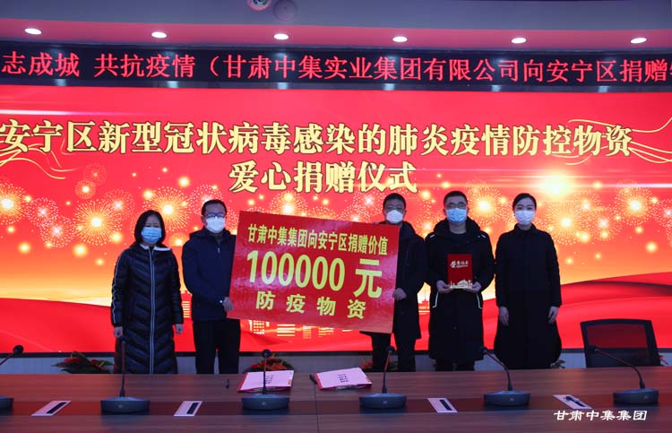 2020年2月7日上午,受甘肅中集集團(tuán)黨委書記、董事長(zhǎng)周啟濤委托,甘肅中集集團(tuán)黨委副書記董廣科、黨委委員魏建峰一行前往蘭州市安寧區(qū)人民政府向安寧區(qū)新型冠狀病毒感染的肺炎疫情聯(lián)防聯(lián)控工作領(lǐng)導(dǎo)小組捐贈(zèng)10萬(wàn)元防疫物資,為當(dāng)前疫情聯(lián)防聯(lián)控、群防群控工作貢獻(xiàn)力量。