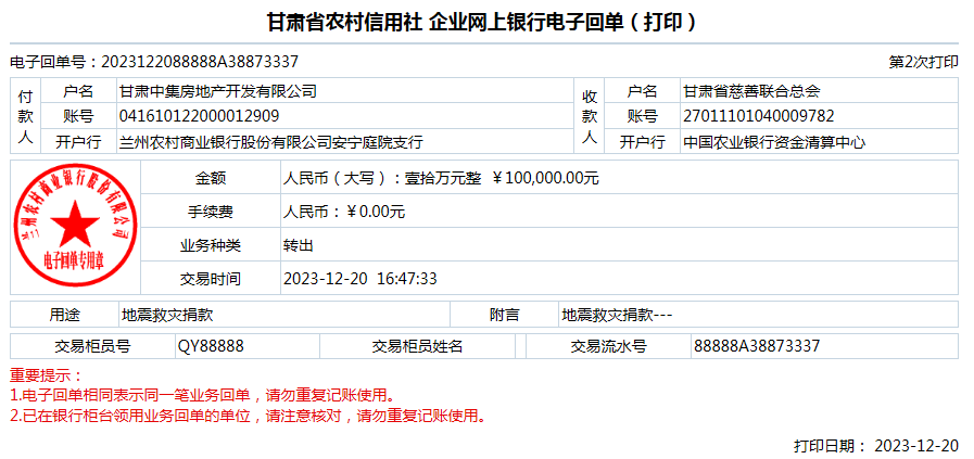 一方有難,八方支援,獲知積石山縣受災(zāi)情況,甘肅中集集團第一時間緊急響應(yīng)、迅速決策,通過甘肅省慈善聯(lián)合總會為積石山地震災(zāi)區(qū)捐款10萬元,用于積石山縣災(zāi)區(qū)緊急救援和受災(zāi)困難群眾生活保障。