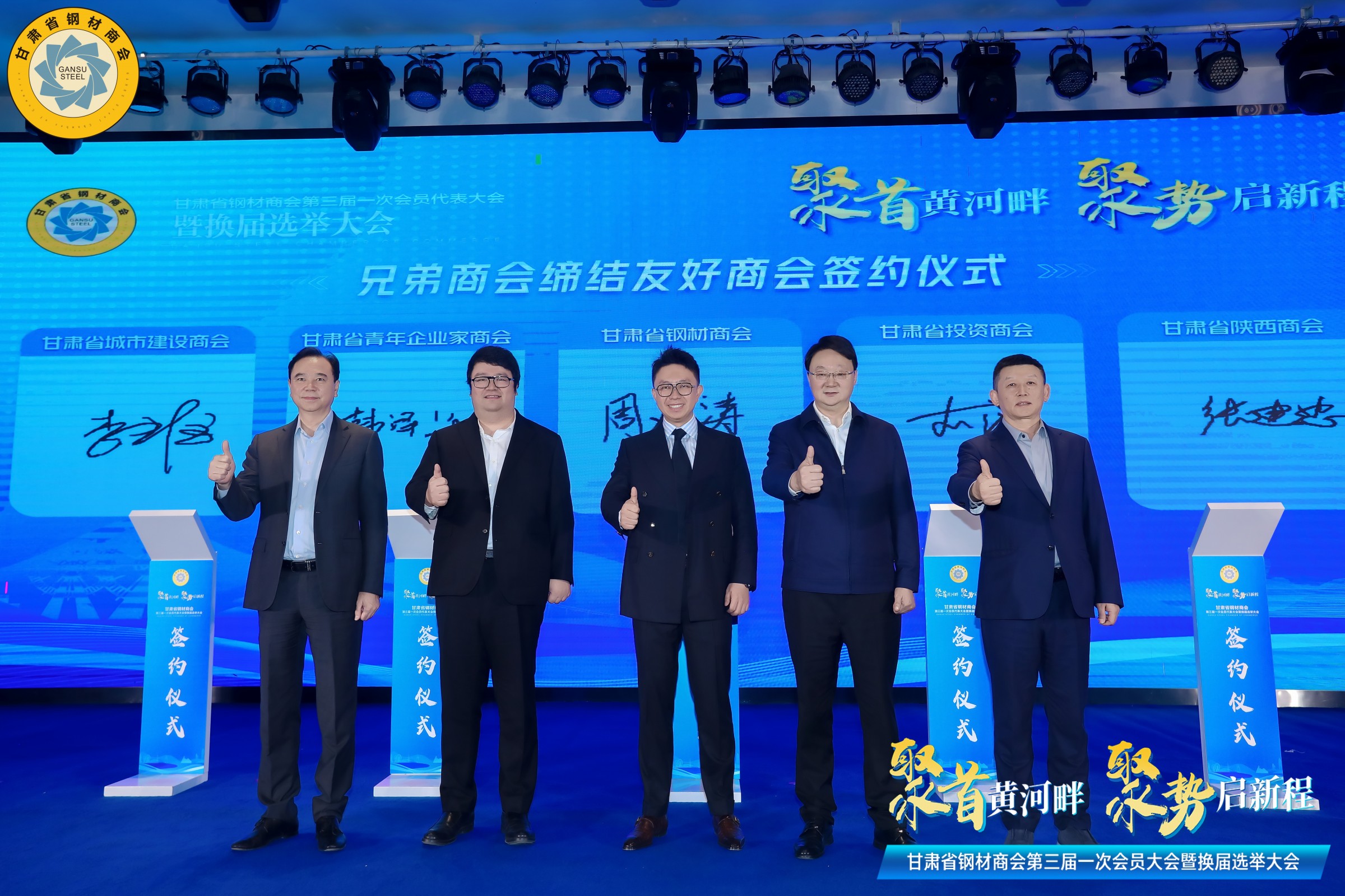 在合作交流環(huán)節(jié),甘肅省鋼材商會分別與甘肅省陜西商會、甘肅省城市建設(shè)商會、甘肅省青年企業(yè)家商會、甘肅省投資商會舉行友好商會簽約儀式,并分別與上海鋼聯(lián)電子商務(wù)有限公司(我的鋼鐵網(wǎng))達(dá)成戰(zhàn)略合作協(xié)議,并與蘭州銀行成功簽訂50億元授信協(xié)議,為甘肅省鋼材商會及會員發(fā)展提供資金、平臺、戰(zhàn)略合作的多方支持。